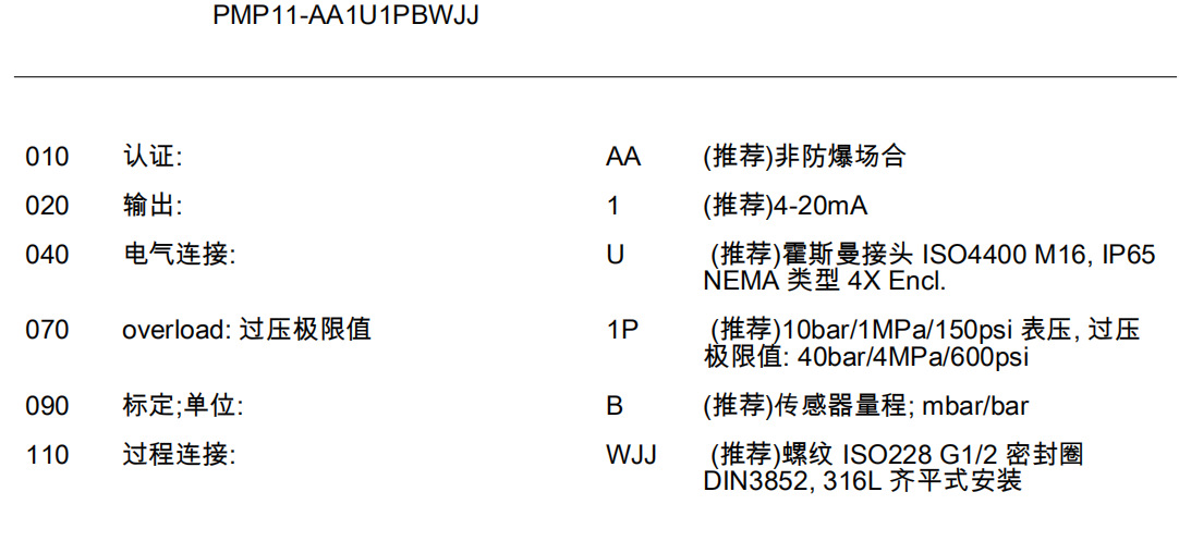 Cerabar PMP11是較經濟的緊湊型壓力變送器。使用壓阻式傳感器,表壓測量范圍為400 mbar..40bar。PMP11采用高品質材料(例如:316L),滿足過程行業中的測量條件要求。能夠在過程行業的標準應用中使用。